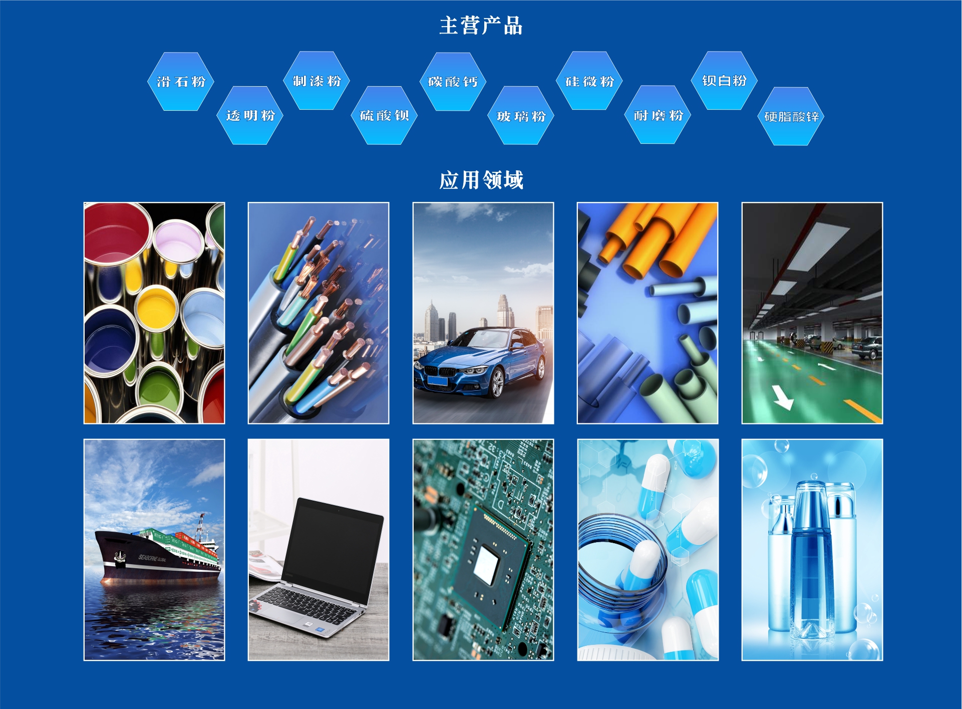 滑石粉,透明粉,硫酸钡,碳酸钙,膨润土,云母粉,玻璃粉,硅微粉,复合粉,耐磨粉